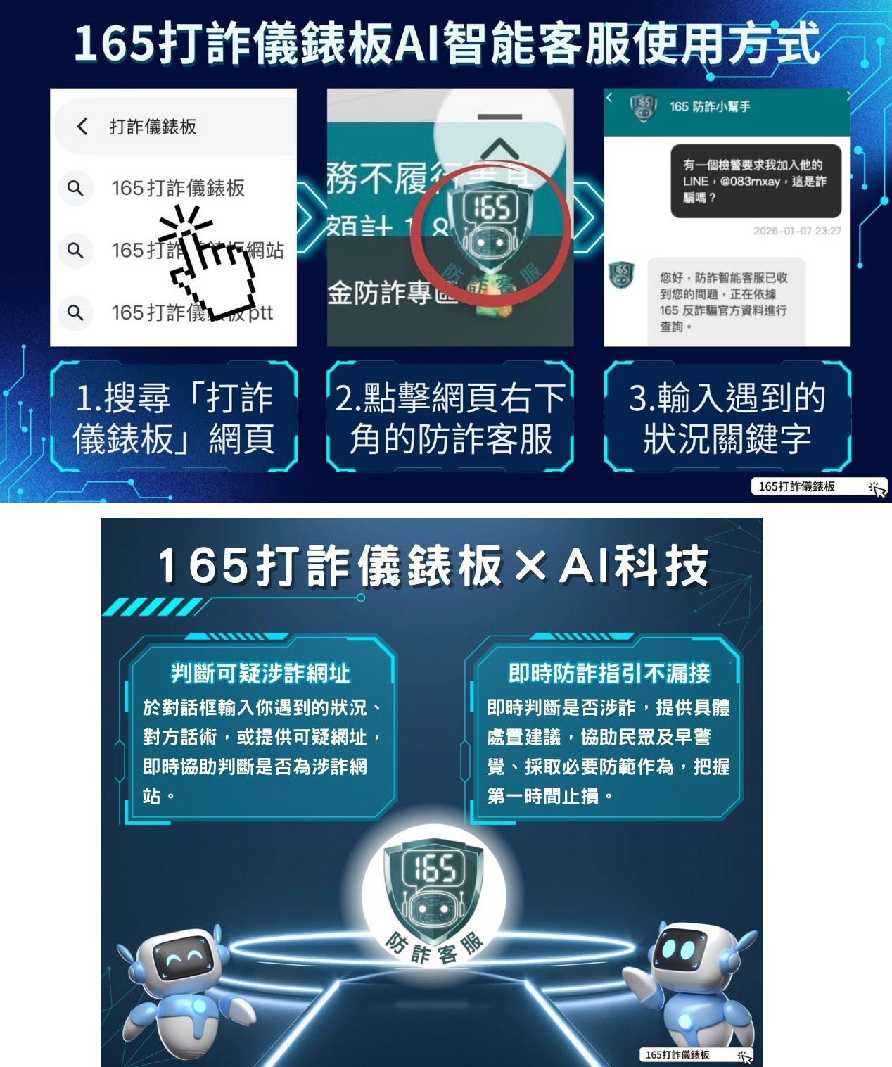 內政部警政署推出「165打詐儀錶板」AI智能客服小幫手。